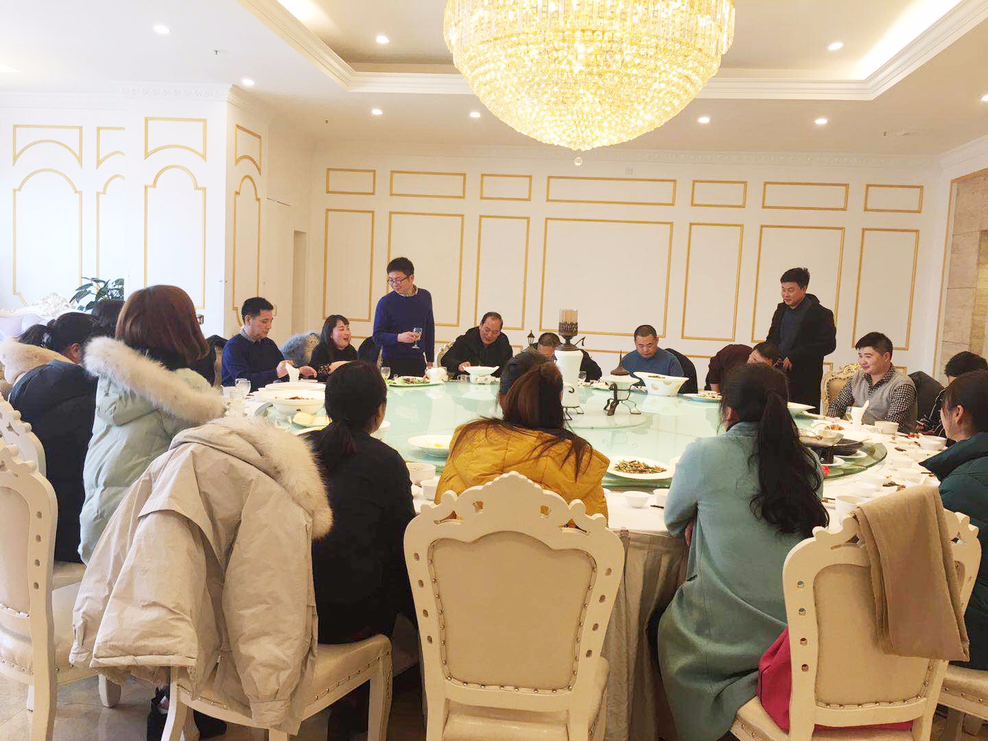 中午会议结束之后,总经理张守磊在光华大酒店设宴,提前祝大家:新年快乐,万事如意,阖家欢乐,在新的一年里做到资源共享,合作共赢!