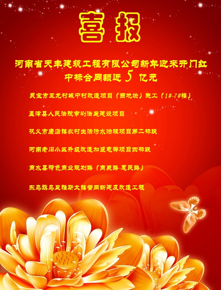 新年伊始,万象更新,在全新的起点上,天丰公司继续乘胜追击,顺利中标!